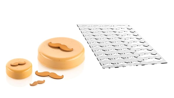 Текстурований силіконовий килимок-трафарет CHABLON MUSTACHE від Silikomart призначений для створення заготовок з унікальних прикрас з айсингу, шоколаду та мастики як деталь-завершення композиції десерту. Він ідеально підходить для прикрашання тортів, капкейків, морозива, мусу, хліба тощо, надаючи кондитерам можливість реалізувати найсміливіші творчі задуми. Для зручності, трафарет має два розміри фігурки: 3,9 х 1,2 та 7 х 2,1 см.