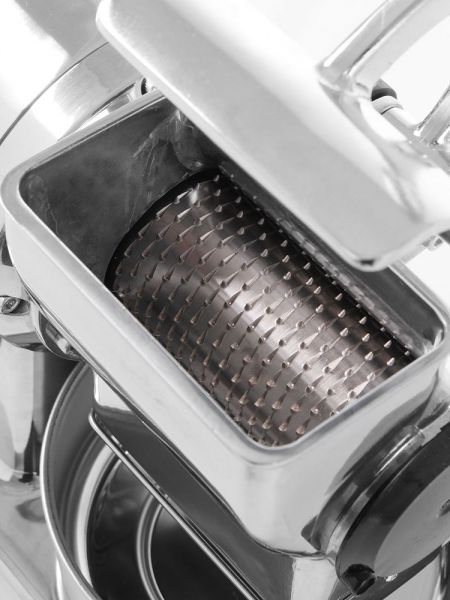 Компактна терка для сиру, виготовлена із нержавіючої сталі, має високу продуктивність.