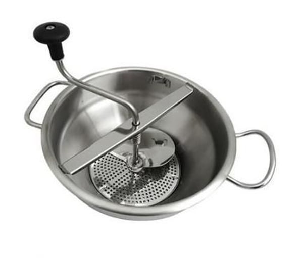 Млин із двома ручками виготовлений із високоякісної нержавіючої сталі та відмінно підходять для приготування пюре варених овочів та фруктів без збереження насіння, шкіри та волокон. Необхідно просто повернути рукоятку, і напівкруглий ніж підмітає, стискає та очищає їжу.