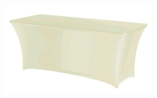Прекрасна скатертина для кейтерингового столу, відмінно натягується на стіл завдяки своїй еластичності та міцності.