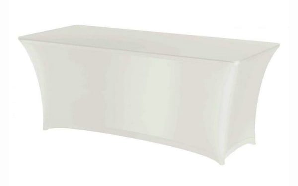Прекрасна скатертина для кейтерингового столу, відмінно натягується на стіл завдяки своїй еластичності та міцності.