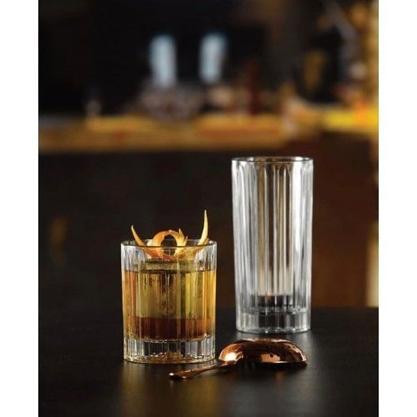Гранована склянка серії Flashback виконана в старомодному дизайні, підійде для подачі міцних напоїв, настоянок або коктейлів.
