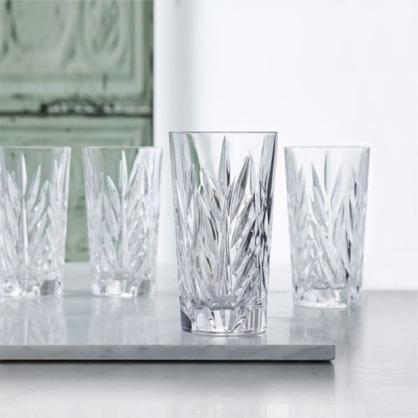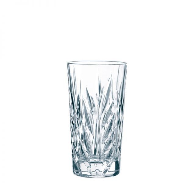 Висока склянка виконана з кришталевого скла, яке має високий коефіцієнт заломлення і відноситься до категорії професійного посуду, може використовуватися дуже інтенсивно кожен день, його можна мити в посудомийці.