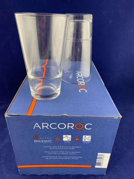 Висока склянка виконана зі скла, відноситься до категорії професійного посуду, може використовуватися дуже інтенсивно кожен день, його можна мити в посудомийці.