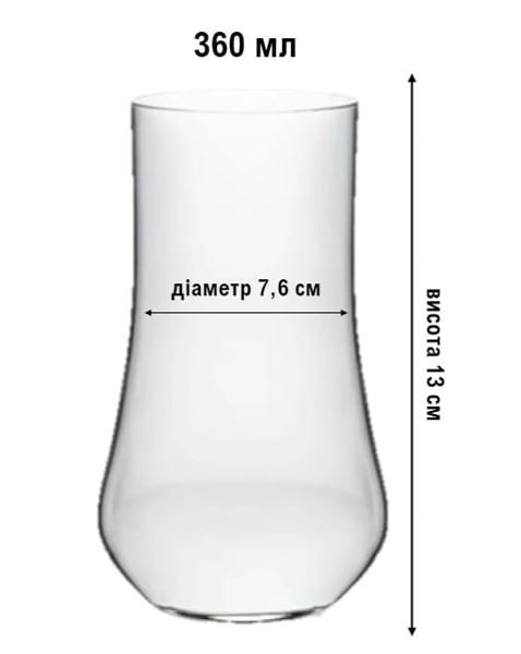 Характеристика: об'єм 360 мл, висота 13 см, діаметр 7,6 см