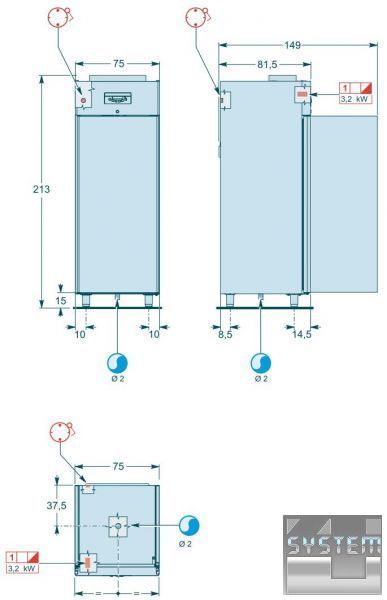 Габаритні, (ДхШхВ) див: 75x84x213