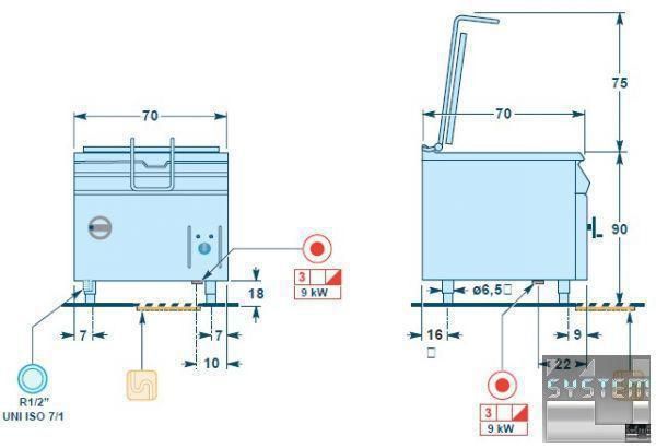 Електрична сковорода з чашею Angelo Po 1G1BR1E, що перекидається, відноситься до теплової модульної лінії. GAMMA 700 .