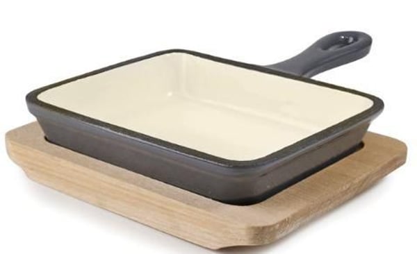 Корпус прямокутної сковороди та ручка виготовлені із чавуну, який покритий емаллю. Також чавун це екологічно чистий та безпечний матеріал, який не виділяє токсичних речовин у процесі смаження.
