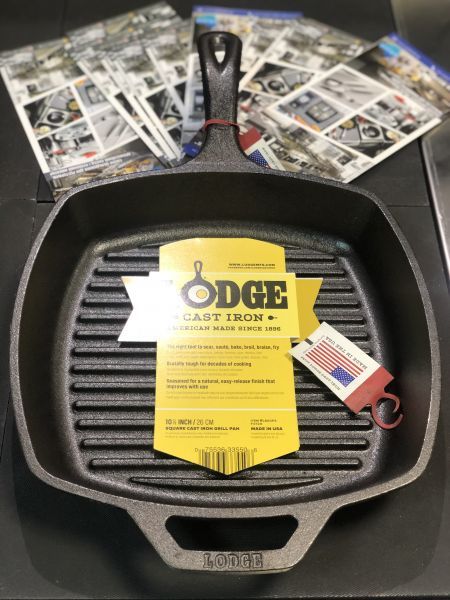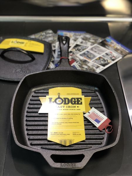 Для зручного та рівномірного приготування їжі в сковороді-гриль можна придбати окремо Вантаж чавунний для смаження Lodge LPP3 .