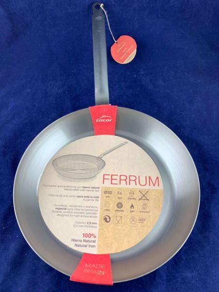 Сковорода та ручка виготовлені із чорної сталі. Ручка виконана способом точкового паяння, тому в процесі роботи не нагрівається, її достатня довжина дозволяє зручно тримати прилад.