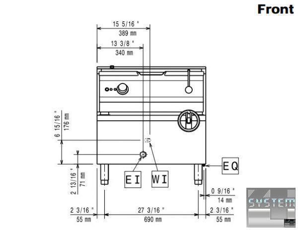 • Ручний механічний пристрій перекидання ванни за допомогою штурвала дозволяє швидко вивантажувати готові страви, зливний жолоб запобігає розбризкуванню страв.