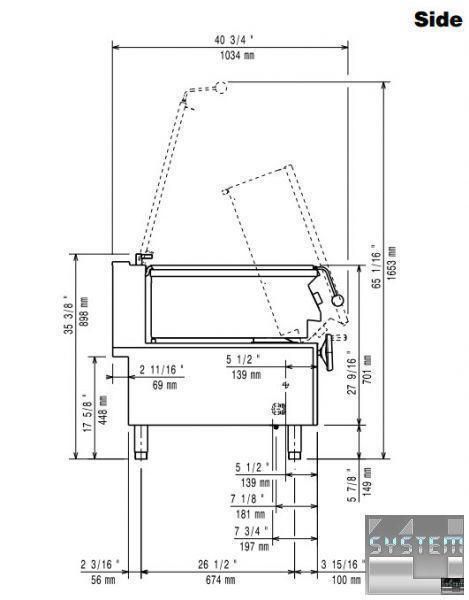 • Ручний механічний пристрій перекидання ванни за допомогою штурвала дозволяє швидко вивантажувати готові страви, зливний жолоб запобігає розбризкуванню страв.