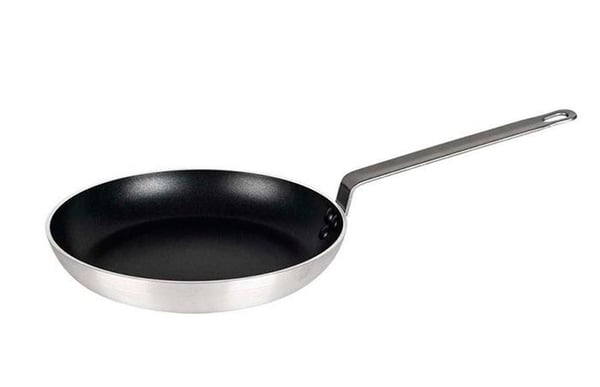 Сковорода з антипригарним покриттям виготовлена з алюмінію, ручка сковороди виконана з нержавіючої сталі, надійна, міцна, не схильна до деформацій. Епоксидна смола забезпечує високу термостійкість.