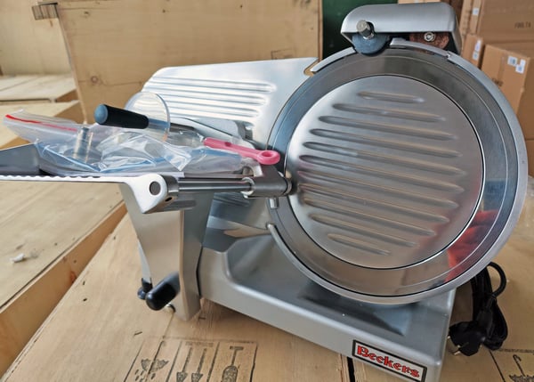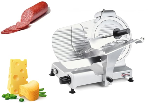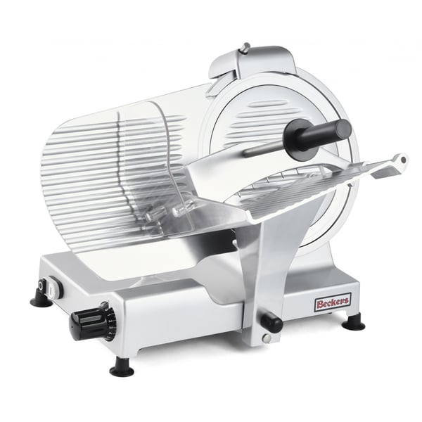Слайсер Beckers BKL 300 PRO з ручною подачею фірми Beckers призначено для рівного нарізування сиру, м'яса, ковбасних виробів, копченостей та інших продуктів харчування і забезпечує точну і швидку нарізку на скибочки певної товщини. Незамінний на будь-якій професійній кухні ресторану, особливо в холодних цехах з виробництва холодних страв, салатів і закусок.