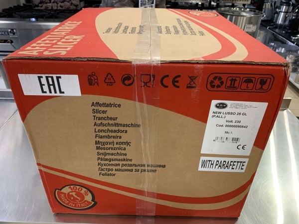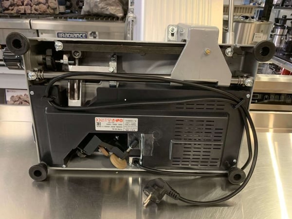 Двигун, пристрої для нарізки, приводиться в дію та зупиняється за допомогою вмикача та вимикача, які відповідають усім стандартам ЄС. Слайсер розрахований на короткий час.