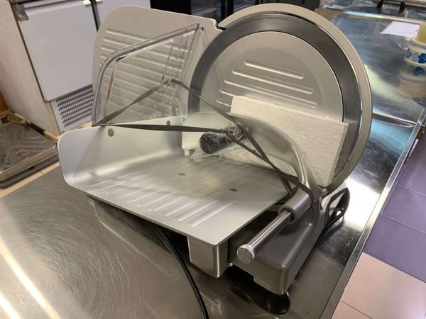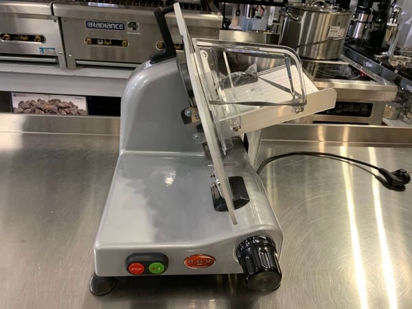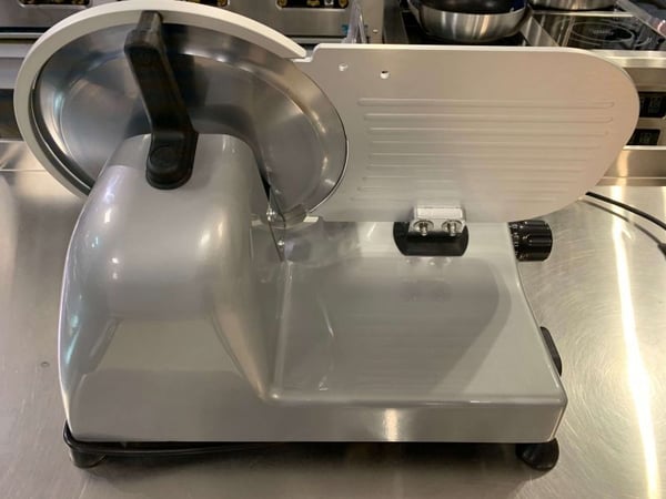Напівавтоматичний слайсер (ломтерізка), з ручною подачею призначений для нарізки сиру, м'яса, ковбасних виробів, інших продуктів харчування та забезпечує точну та швидку нарізку на скибочки певної товщини. Незамінний на будь-якій професійній кухні ресторану, особливо у холодних цехах з виробництва холодних страв, салатів та закусок.