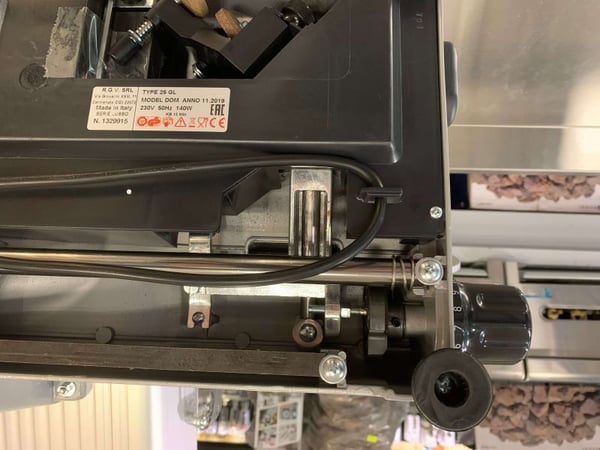 Товщина нарізки від 0 до 14 мм, і завдяки, регулювання товщини нарізки можна самим визначати бажану товщину, а також легко розраховувати вихід товару в грамах.