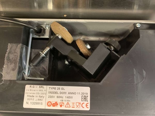 Професійний слайсер забезпечений вбудованим заточуючим пристроєм, що дозволяє підтримувати ріжучу кромку ножа постійно в гострому стані.