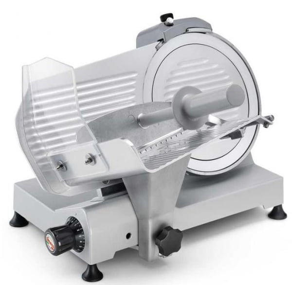 Електричний слайсер призначений для нарізки сиру, м'яса, ковбасних виробів, інших продуктів харчування та забезпечує точну та швидку нарізку на скибочки певної товщини. Незамінний на будь-якій професійній кухні ресторану, відділах гастрономії у супермаркетах, особливо у холодних цехах з виробництва холодних страв, салатів та закусок.