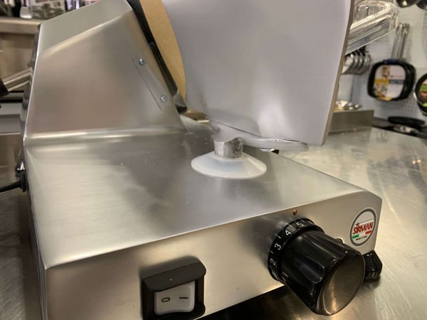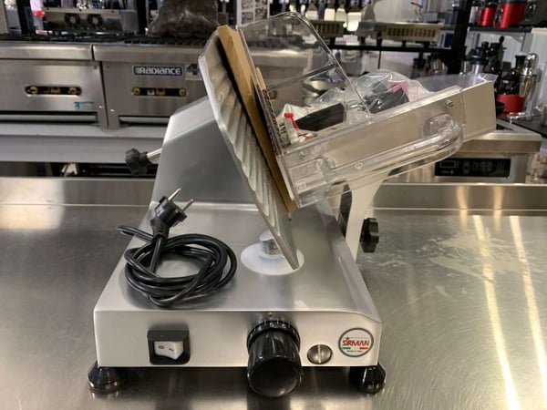 Напівавтоматичний слайсер (ломтерізка), з ручною подачею призначений для нарізки сиру, м'яса, ковбасних виробів, інших продуктів харчування та забезпечує точну та швидку нарізку на скибочки певної товщини. Незамінний на будь-якій професійній кухні ресторану, особливо у холодних цехах з виробництва холодних страв, салатів та закусок, супермаркетах, барах.