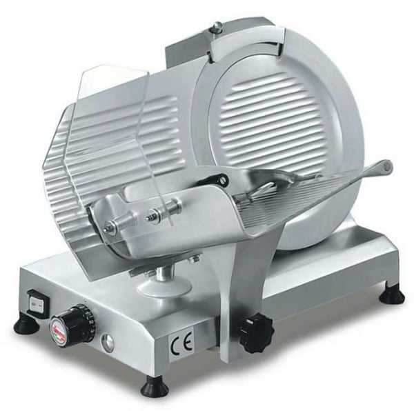 Напівавтоматичний слайсер (ломтерізка), з ручною подачею призначений для нарізки сиру, м'яса, ковбасних виробів, інших продуктів харчування та забезпечує точну та швидку нарізку на скибочки певної товщини. Незамінний на будь-якій професійній кухні ресторану, особливо у холодних цехах з виробництва холодних страв, салатів та закусок, супермаркетах, барах.