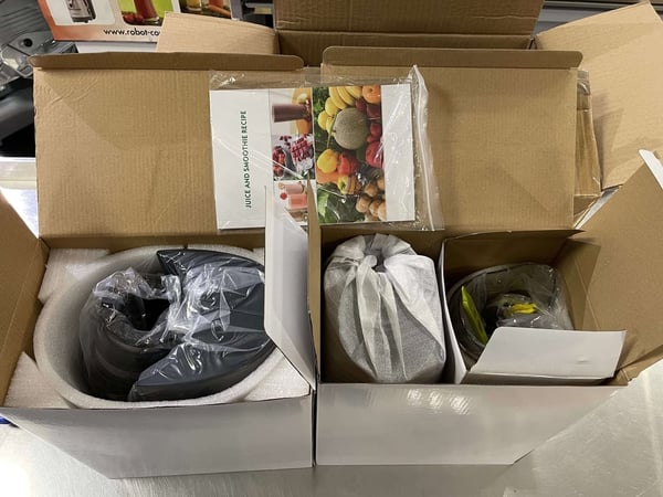 Оснащена штовхачем для проштовхування плодів, щіткою для чищення, два лотки для соку та макухи, два фільтри – для соку та для соку з м'якоттю.