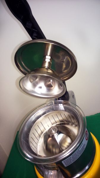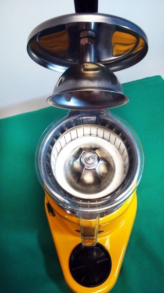 Соковитискач Apach напівавтоматичний, віджимання соку відбувається за допомогою обертання конуса на який ви кладете 1/2 цитрусового продукту, сік стікає в спеціальну ємність. Устаткування працює швидко, і є надійним засобом віджимання фрешів з мінімальними відходами.