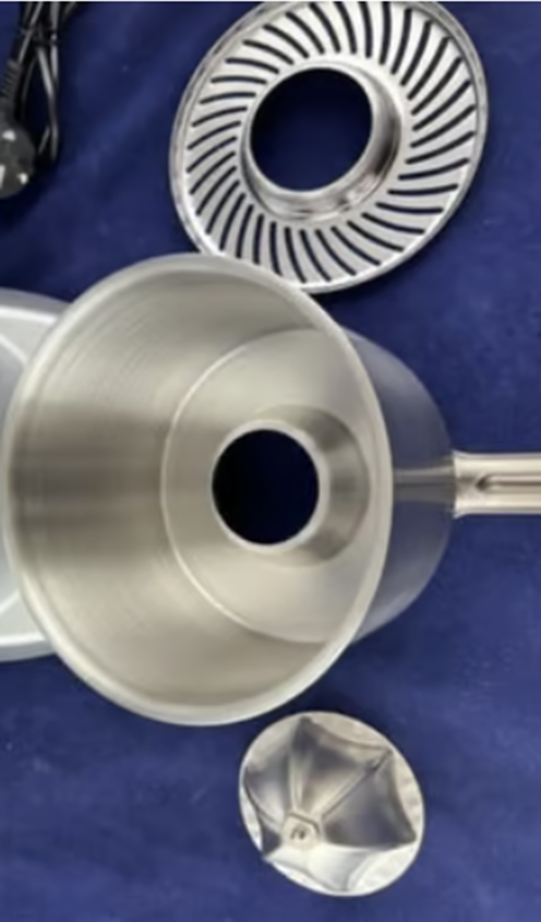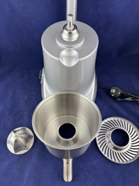 Корпус обладнання виконаний із кислотостійкого литого алюмінію, конус, решітки, насадки та контейнер для соку виготовлені із харчової високоякісної нержавіючої сталі.