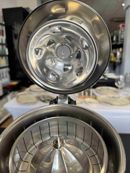 Всі робочі елементи, що контактують із соком, виготовлені з високоякісної нержавіючої сталі, що гарантує ідеальну гігієнічність, стійкість до кислот та тривалий термін служби.