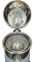 Знімний пластиковий краплезбірник: Продумана конструкція лотка надійно утримує залишки соку після приготування, запобігаючи появі липких плям на барній стійці. Він виготовлений з міцного харчового пластику, який не вбирає запахи та легко миэться, забезпечуючи бездоганну чистоту робочої зони.