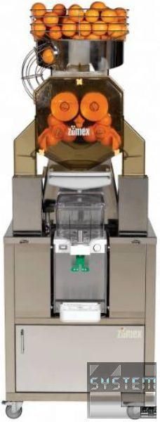 Кожура автоматически сбрасывается в большой пластиковый бак, расположенный в нижней части тумбы. Сокоохладитель автоматически поддерживает заданную температуру сока. Уровень сока в резервуаре сокоохладителя, контролируется регулируемым оптическим сенсором. При понижении уровня, процесс отжима автоматически запускается. Тумба-бункер изготовлена из нержавеющей стали и снабжена колесами с фиксаторами. Может использоваться не только как соковыжималка для апельсинов и других цитрусовых, но и как соковыжималка для гранатов.