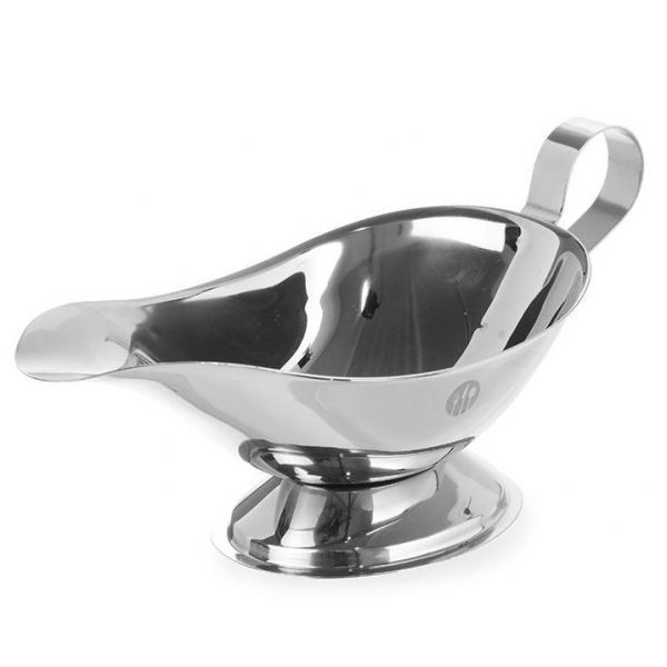 Соусник виготовлений із нержавіючої сталі, з ручкою. Зручна форма та носик для дозування.