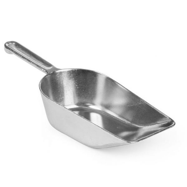 Совок алюмінієвий, має округлену форму із прямим дном. У ручці отвір для підвішування.