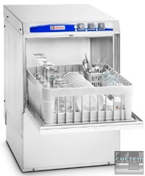 Машина комплектується двома універсальними кошиками (металевими, покритими пластиком розміром 350х350). До електричних частин є доступ з фронтальної сторони для зручності обслуговування. Рекомендується при підключенні до водопровідної мережі використовувати фільтр-пом'якшувач.