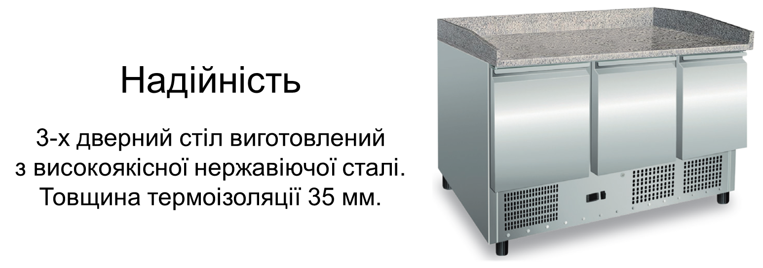 Стіл для піци 3-х дверний з нижнім агрегатом та гранітною поверхнею Atelier А-S903PZ