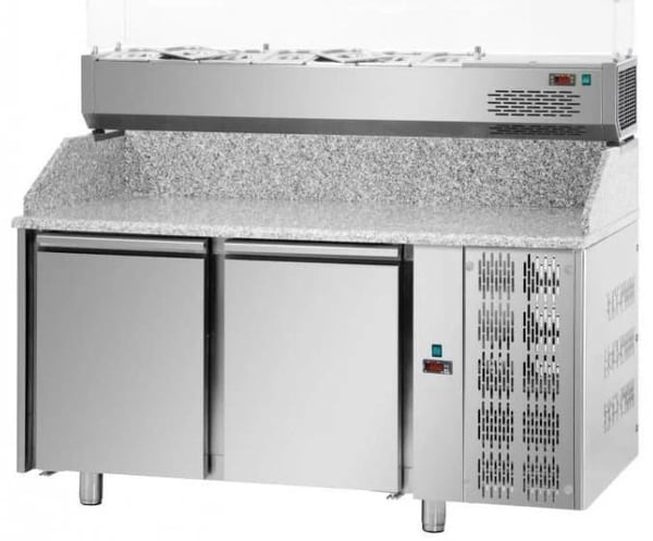 Холодильний стіл із гранітною стільницею та бортами призначений для зберігання харчових продуктів, які використовують для приготування піци. Також стіл може використовуватися як для тимчасового зберігання та обробки продуктів харчування, десертів, коктейлів, так і окремий елемент холодильного обладнання.