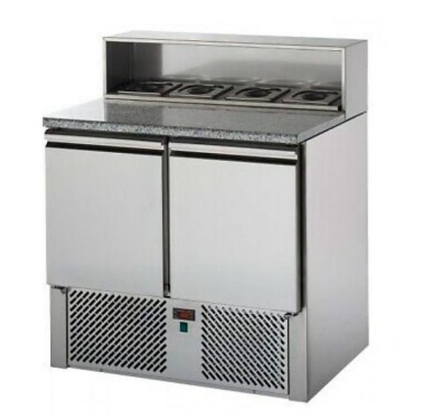 Холодильний стіл із гранітною стільницею та бортами призначений для зберігання харчових продуктів, які використовують для приготування піци. Також стіл може використовуватися як для тимчасового зберігання та обробки продуктів харчування, десертів, коктейлів, так і окремий елемент холодильного обладнання.