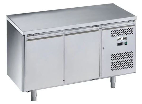Стіл холодильний 2-х дверний без борту Atelier А-GN2100TN призначений для розкочування тіста та обробки інгредієнтів для приготування страв, заморозки та довготривалого зберігання продуктів і напоїв на підприємствах громадського харчування та торгівлі. Цей стіл значно полегшує роботу професійного кухаря, забезпечуючи доступ до необхідних продуктів і зручну робочу поверхню для приготування страв – інгредієнти можна легко діставати і обробляти прямо на столі. Крім того, морозильний стіл може використовуватися для розміщення різного допоміжного обладнання. Це дуже зручне і необхідне професійне обладнання на кухні будь-якого ресторану, кафе, бару і великих підприємствах. Внутрішнє та зовнішнє оздоблення - нержавіюча сталь. Безперебійна робота обладнання гарантується виробником при температурі повітря не більше +32°C / 50%HR (кліматичний клас 4). Холодоагент R600а.