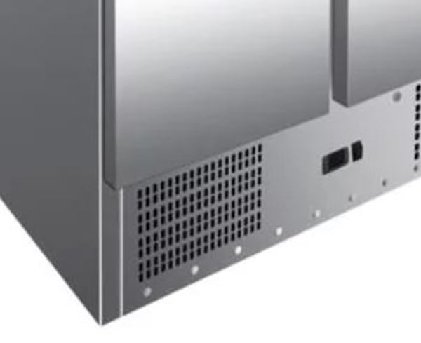 Стіл холодильний 3-х дверний без борту Atelier А-S903 SS TOP призначений для розкочування тіста та обробки інгредієнтів для приготування страв, заморозки та довготривалого зберігання продуктів і напоїв на підприємствах громадського харчування та торгівлі. Цей стіл значно полегшує роботу професійного кухаря, забезпечуючи доступ до необхідних продуктів і зручну робочу поверхню для приготування страв – інгредієнти можна легко діставати і обробляти прямо на столі. Крім того, холодильний стіл може використовуватися для розміщення різного допоміжного обладнання. Це дуже зручне і необхідне професійне обладнання на кухні будь-якого ресторану, кафе, бару і великих підприємствах. 1 решітчаста полиця GN1/1 з пластиковим покриттям у кожному відділенні. Внутрішнє та зовнішнє оздоблення - нержавіюча сталь. Безперебійна робота обладнання гарантується виробником при температурі повітря не більше +32°C / 50%HR (кліматичний клас 4). Холодоагент R290.