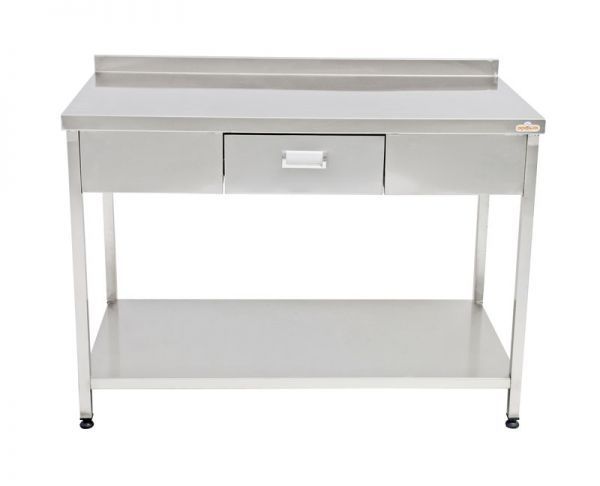 Пристінний борт заввишки 50 мм. Під стільницею висувний ящик для збирання макухи, що кріпиться на телескопічних напрямних. Нижня полиця. Регульовані по висоті гвинт-опори.