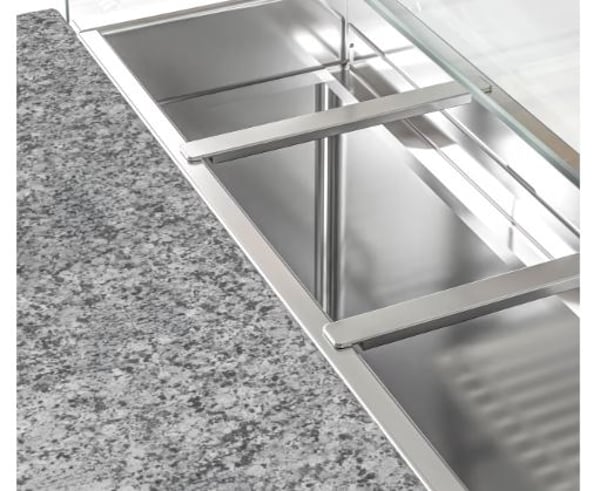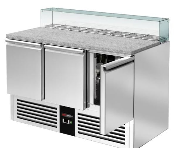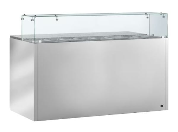Скляну надставку можна використовувати як полицю для інгредієнтів си робочого інвернтарю. Опціонально 8 x GN 1/6 гастроємностей, які охолоджуються та служать вітриною, де зберігаються начинки.