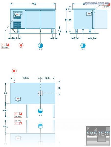 Технічні характеристики столу -тумби "SAGI" (BASI FERMALIEVITA) KBF16M