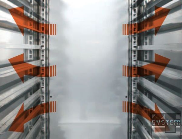 - Стандартне оснащення: 7 пар напрямних із нержавіючої сталі AISI 304 на кожну полицю.