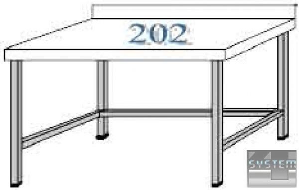 Робоча поверхня столів виготовлена з високоякісної нержавіючої сталі, марок AISI 202 (201). При експлуатації в органічних кислотних та інших помірно агресивних середовищах вона має високу корозійну стійкість і практично не поступається за цим показником 304 марки. Сталь не рекомендується використовувати для виготовлення ємностей та судин, експлуатація яких передбачає навантаження на зварювальні шви, а також для тривалого зберігання та транспортування кислот та деяких інших високо агресивних хімічних продуктів. Пристінний борт заввишки 50 мм. Висота столів 850 мм.
