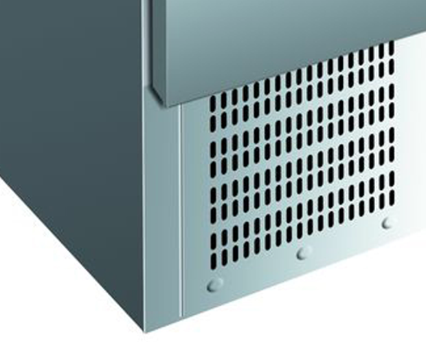 Внутрішнє та зовнішнє оздоблення (корпус та стільниця) виконані з нержавіючої сталі. Агрегат розташовано внизу.