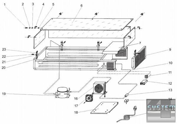 В комплекте: витрина холодильная для гастроемкостей 6 х 1/4 GN, глубина 150 мм