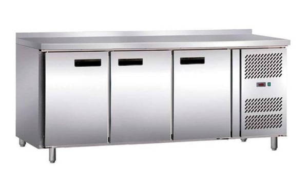 Стіл холодильний з трьома орними дверима з поворотним механізмом, також підігрів по контуру дверей перешкоджає утворення конденсату. Вбудований агрегат, який легко витягується для обслуговування обладнання.