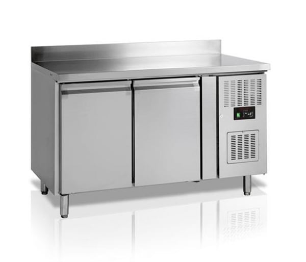 Стіл з двома орними дверима з поворотним механізмом, також підігрів по контуру дверей перешкоджає утворення конденсату. Бокове розташування компресора. Вбудований агрегат, який отримують для обслуговування.