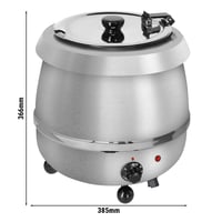 Супник GGM SWH9E (марміт для перших страв) призначений для збереження в гарячому та теплому стані перших страв – різних супів, рідкого пюре, бульйонів та каш. Це професійне теплове обладнання використовується на кухнях для збереження страв вже гарячими на лініях роздачі, ресторанів самообслуговування, кафе і барів. Ідеально підійде для шведського столу, кейтерингу або місць із самообслуговуванням. Завдяки плавному регулюванню температури, супник дає можливість скоротити ймовірність пересушування та закипання готових страв.