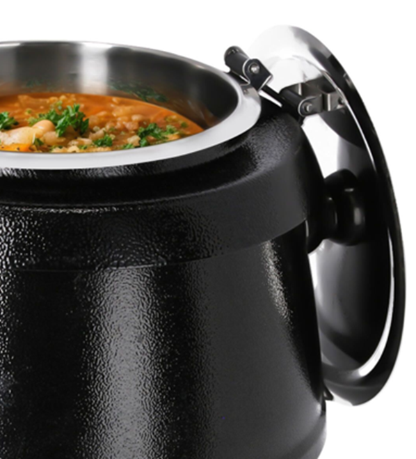 Супник GGM SWH9S (марміт для перших страв) призначений для збереження в гарячому та теплому стані перших страв – різних супів, рідкого пюре, бульйонів та каш. Це професійне теплове обладнання використовується на кухнях для збереження страв вже гарячими на лініях роздачі, ресторанів самообслуговування, кафе і барів. Ідеально підійде для шведського столу, кейтерингу або місць із самообслуговуванням. Завдяки плавному регулюванню температури, супник дає можливість скоротити ймовірність пересушування та закипання готових страв.